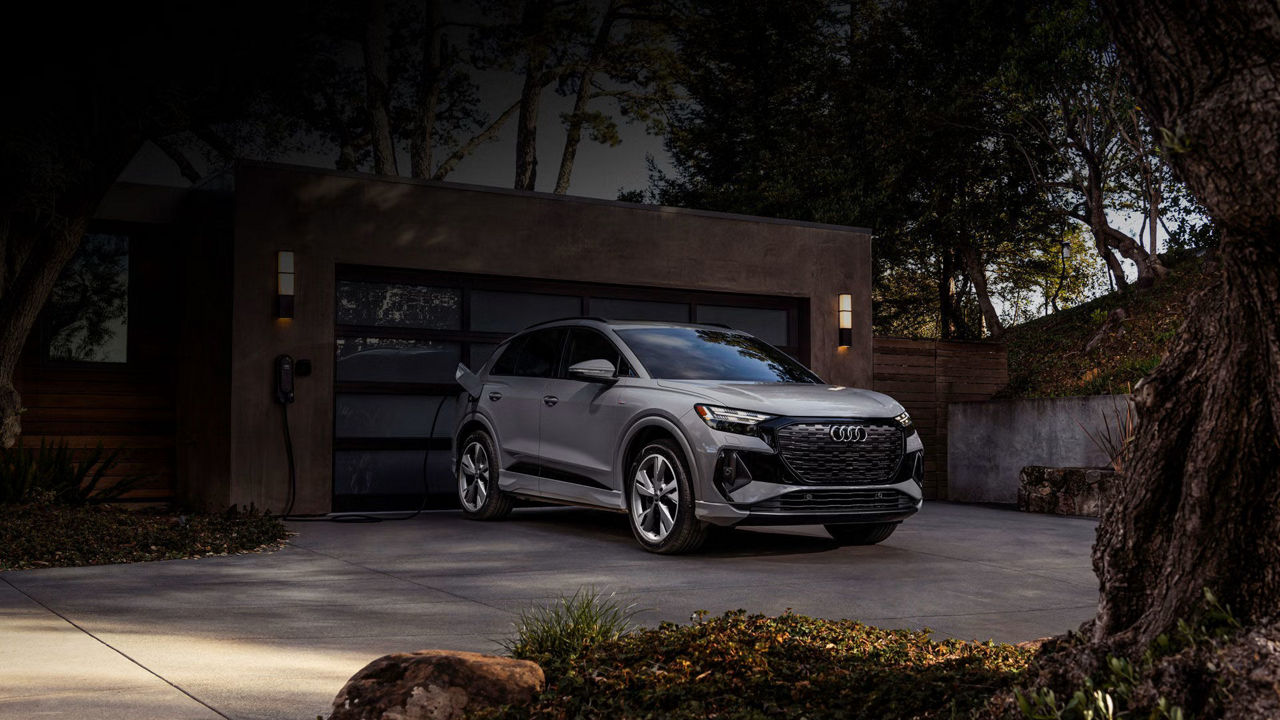 1Estimated range is based on a fully charged Audi Q4 45 e-tron and determined in accordance with Natural Resources Canada’s (NRCan) testing guidelines. Refer to vehicles.nrcan.gc.ca for details. Different vehicle configurations will have different ranges. Full battery charge is required. Actual driving range will vary based on driving and charging habits, weather and temperature, terrain, use of HVAC and accessories, battery age and vehicle condition.